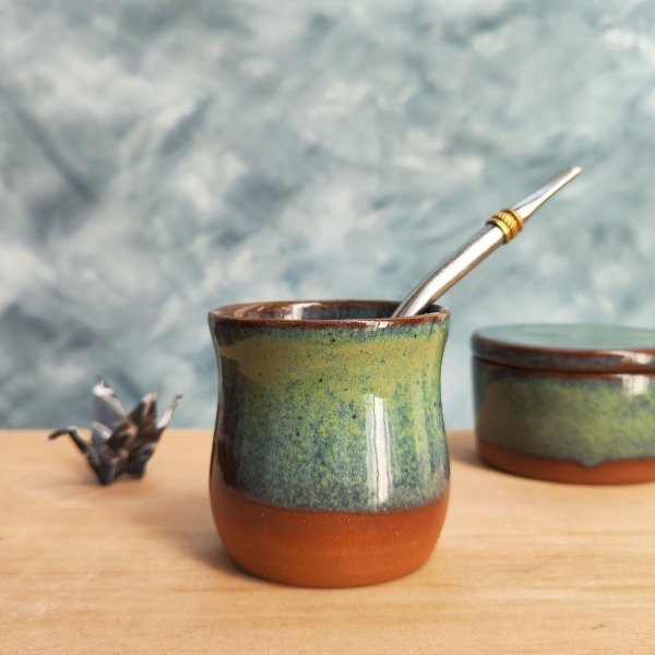 Mate de gres tostado con esmalte verde bosque